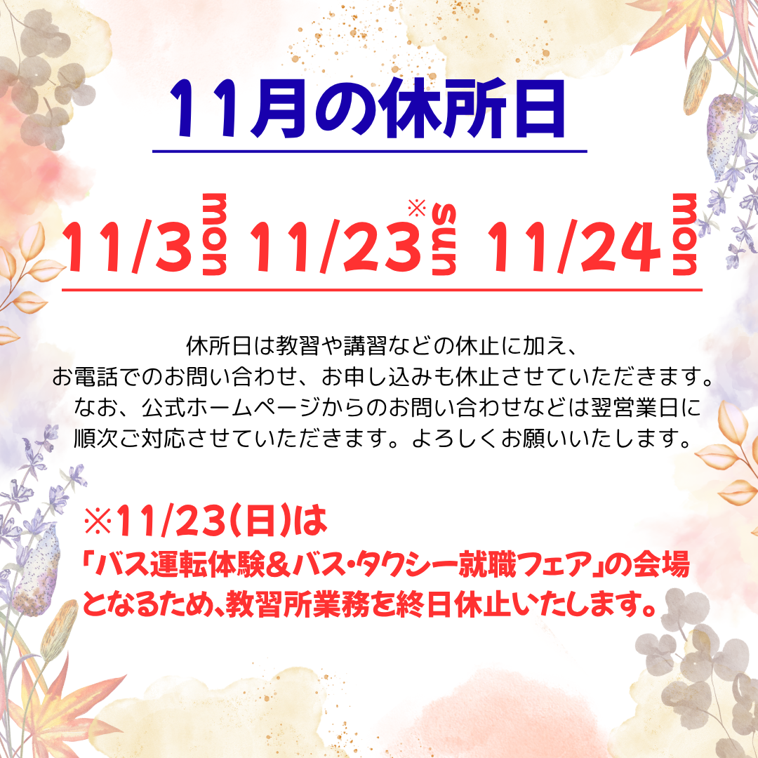 11月休所日のお知らせ